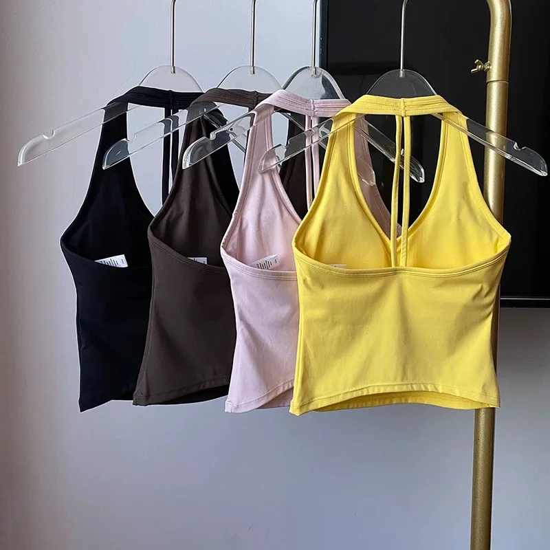여성 섹시 V넥 피트니스 브라 누드 스포츠 브라 홀터넥 요가복 베스트 편안하고 통기성 좋은 짐탑 (액티브웨어)
