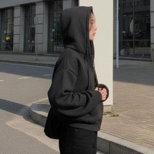 [옷자락] 여성 겨울 기모 크롭 후드집업 스트릿룩