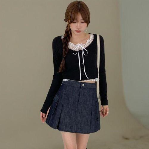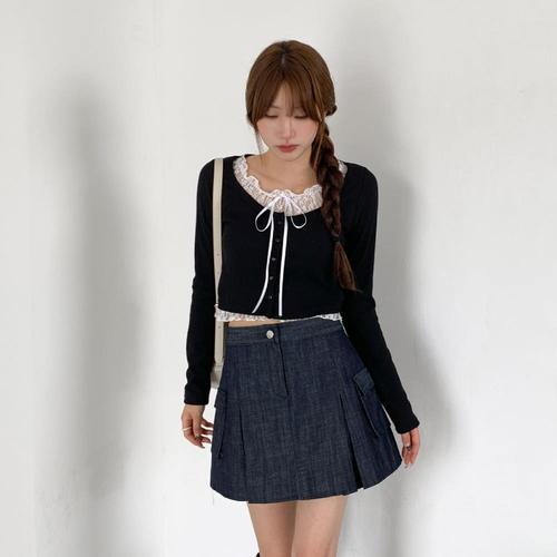 [옷자락] 여성용 키치무드 면스판 플리츠포켓 데님 미니스커트