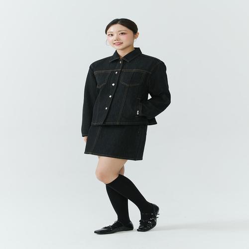 [미라클세븐]여성 블랙 A라인 청치마 스티치 논스판 미니스커트