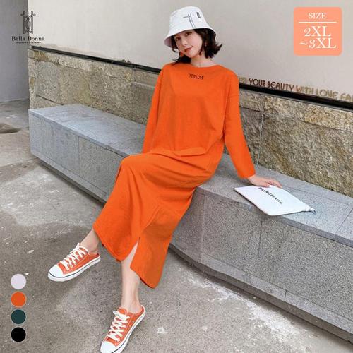 벨라도나 봄가을 여성 캐주얼 옆트임 루즈핏 긴팔 롱원피스 편안한 스판원단 Bon-2612