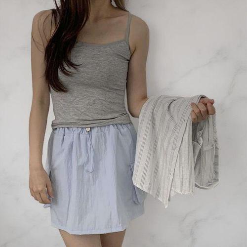 [옷자락] 여자 레이온 스판 언발 이중끈 크롭 나시티