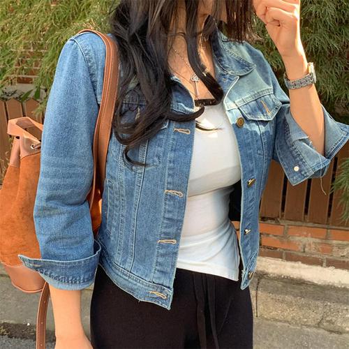 여성청자켓 스판 데님재킷 와일드 슬림 청재킷