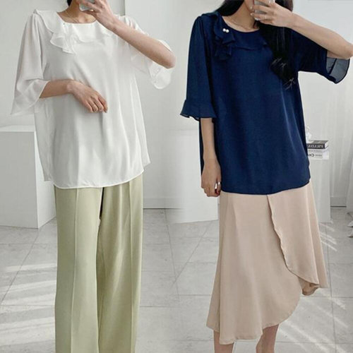 [트리아나]MARIO소고 반목 플리츠 블라우스AL1BA01