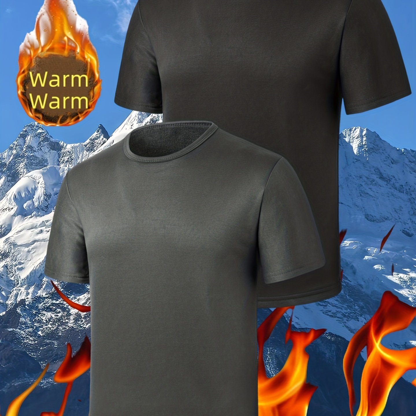 TEMU 2개 세트 핏감 좋은 숏 슬리브 두꺼운 플리스 라운드넥 상의, 가을 겨울 캐주얼 숏 슬리브 스포츠 러닝웨어, 플리스 안감 핏감 좋은 상의, 캐주얼 웨어,가을 러닝,세련된 디자인,반팔 셔츠,두꺼운 원단,포근한 원단,레이어링 피스,운동용 탑,체육관 애호가