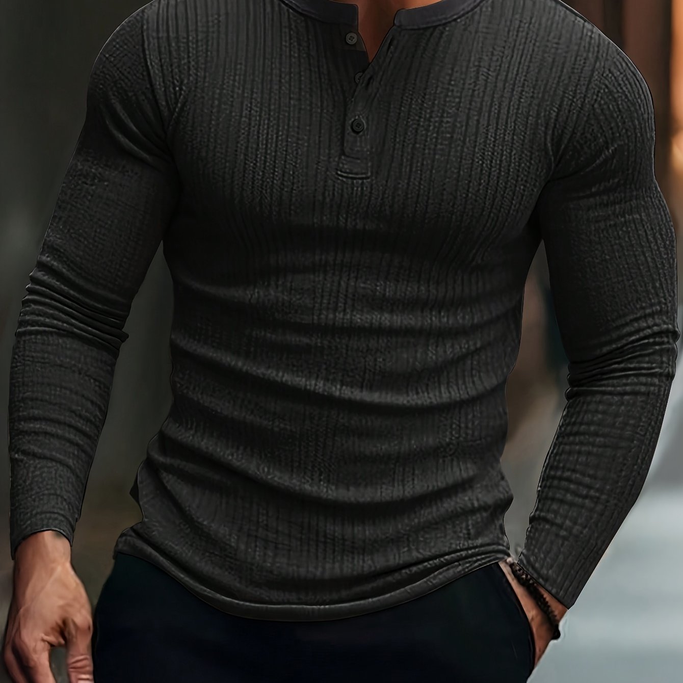 TEMU 남성용 긴팔 티셔츠 - 버튼 앞면 클로저, 클래식 칼라 셔츠 (오피스, 데일리 & 포멀 웨어) - 비침 없는 원단 - 가을 레이어링 필수템, 오피스룩, V넥 디자인, 튼튼한 구조, 다용도 상의, 프로페셔널 남성
