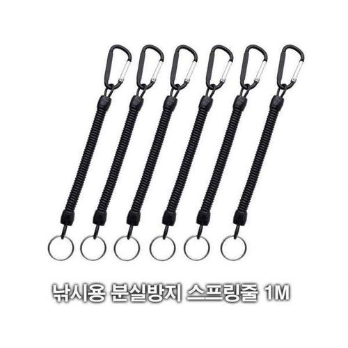 카라비너 용품 줄 스프링줄 낚시 블랙 낚시용 1M (3zcpZ)