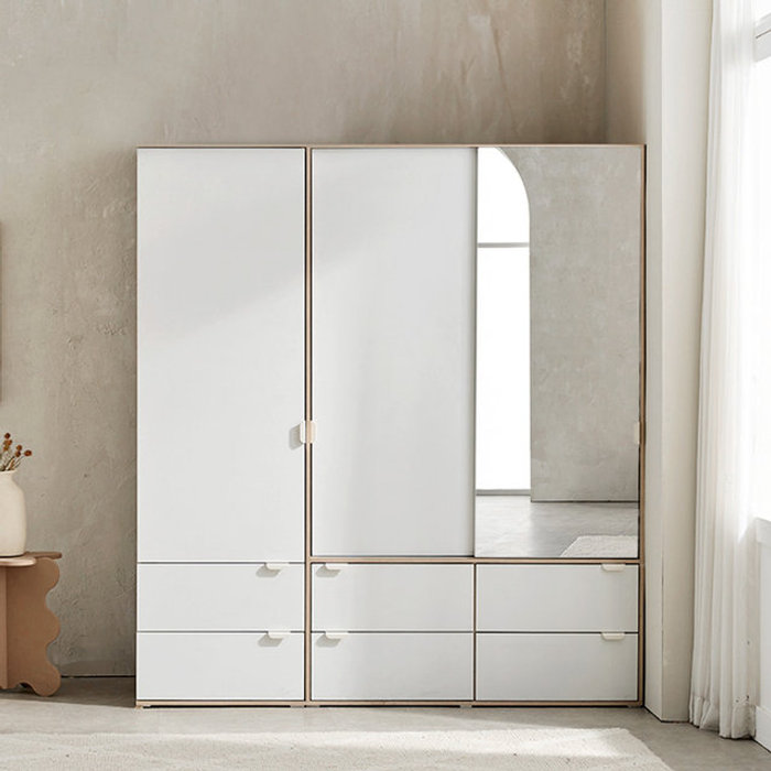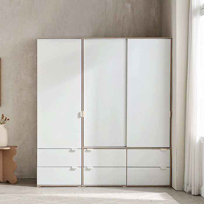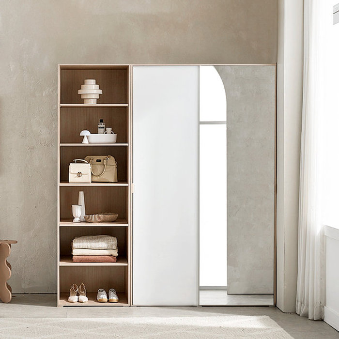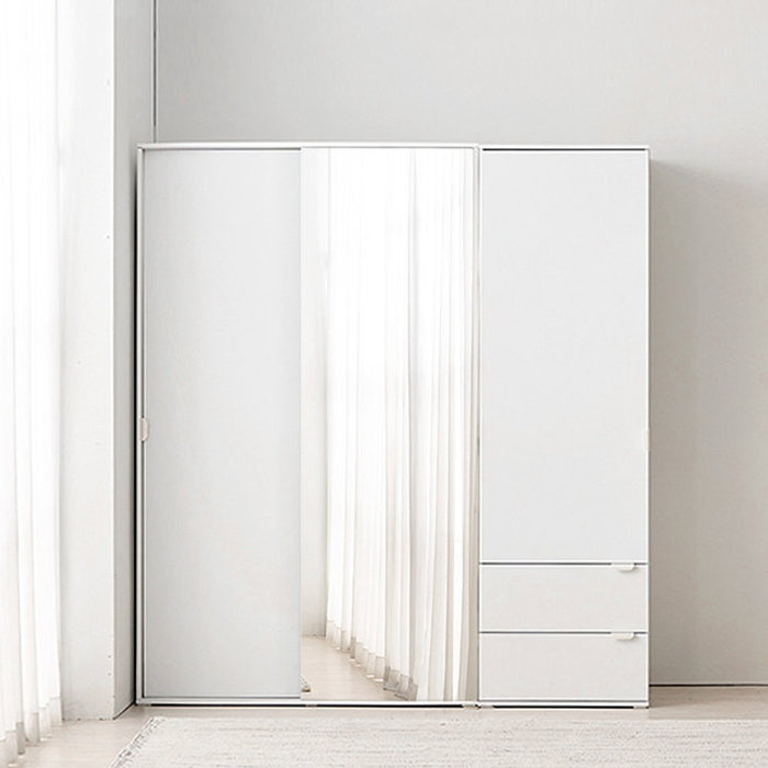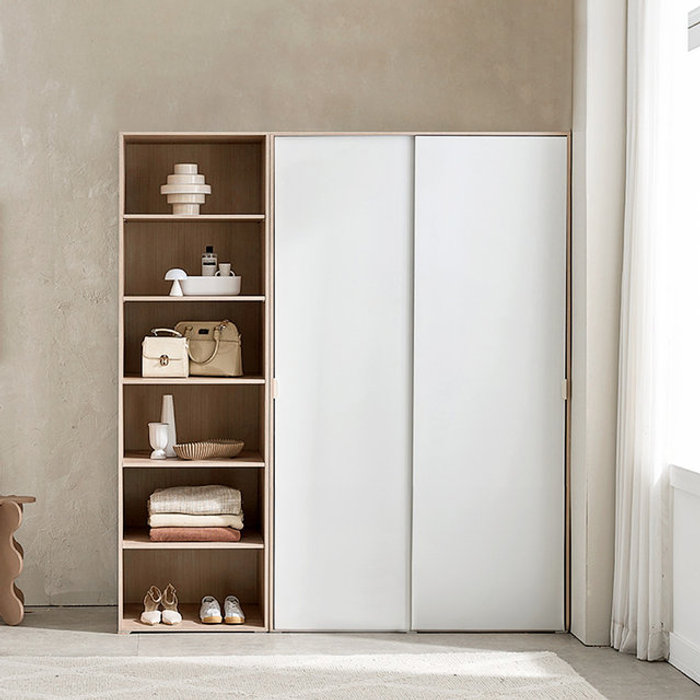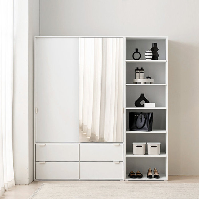 코라 1800 슬라이딩 옷장 세트 1200 서랍옷장 (선반형)+600 선반장