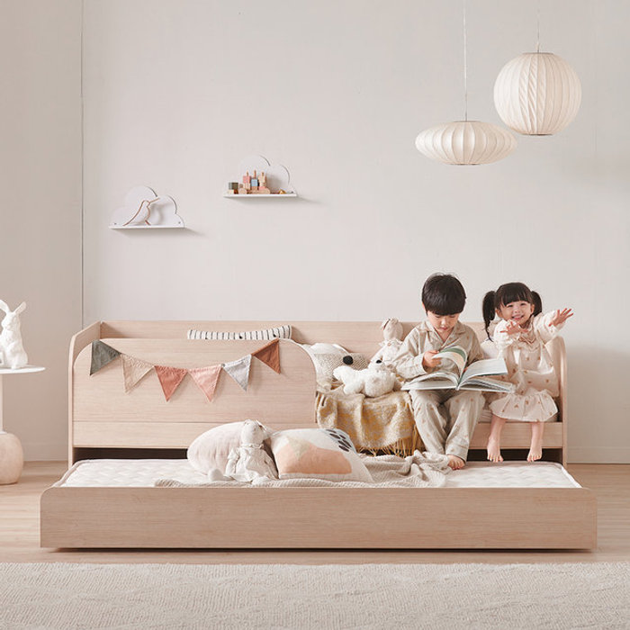 [에보니아] 소피아 싱글 이단 슬라이딩 수납침대 매트제외, 내추럴