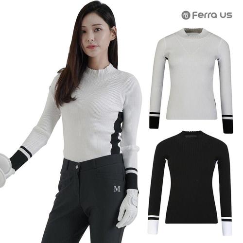 (WFJ8D03) TC 페라어스 여성 슬림배색 방풍 골프 니트티셔츠 ATW44R