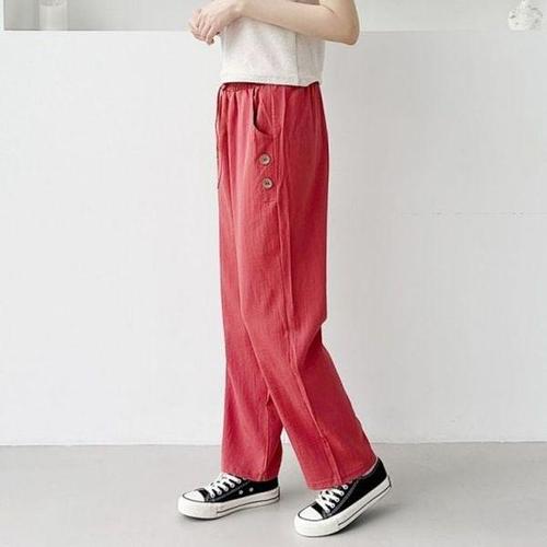 [셀러허브_여성트랜드패션]ONM 슬립미 허리밴딩 인견 투버튼 일자바지 SD250