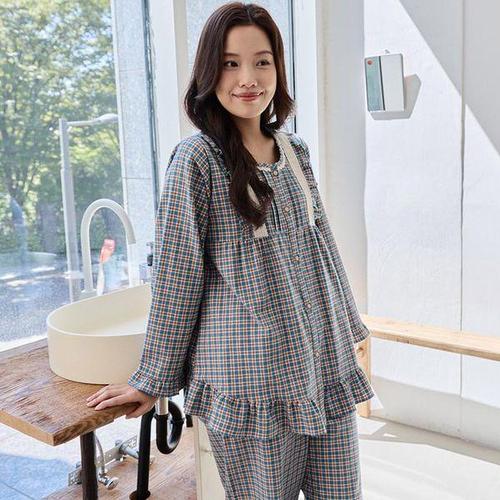 [알콩단잠]국내생산 잠옷세트 슬립웨어 체크 여성 파자마 선염면 홈웨어