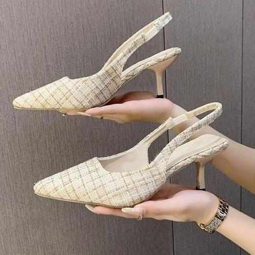 [셀러허브_여성트랜드패션]ONM 여성 스틸레토 슬링백 플랫 신발 데일리 트위드