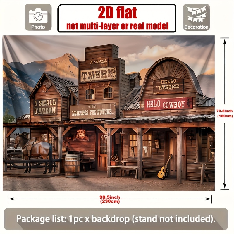 TEMU 1pc 서부 파티 배경 배너 - 낡은 농장 & 가우보이 타운 장면, "A SMALL TAVERN" 표지, 내구성 있는 폴리에스터 장식, 가정, 방, 벽, 및 이벤트 배경, 가우보이 파티 장식