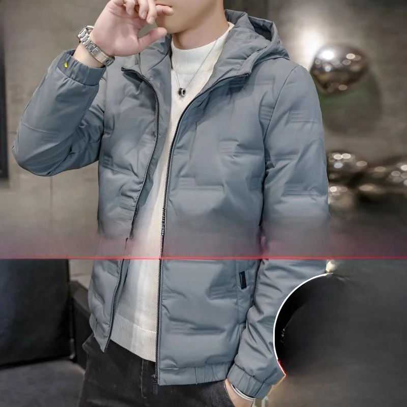 TEMU 새로운 봄과 겨울 남성용 미디엄 길이 다운 재킷, 패셔너블 두꺼운 방풍 후드 청소년 피코트 캐주얼 다용도