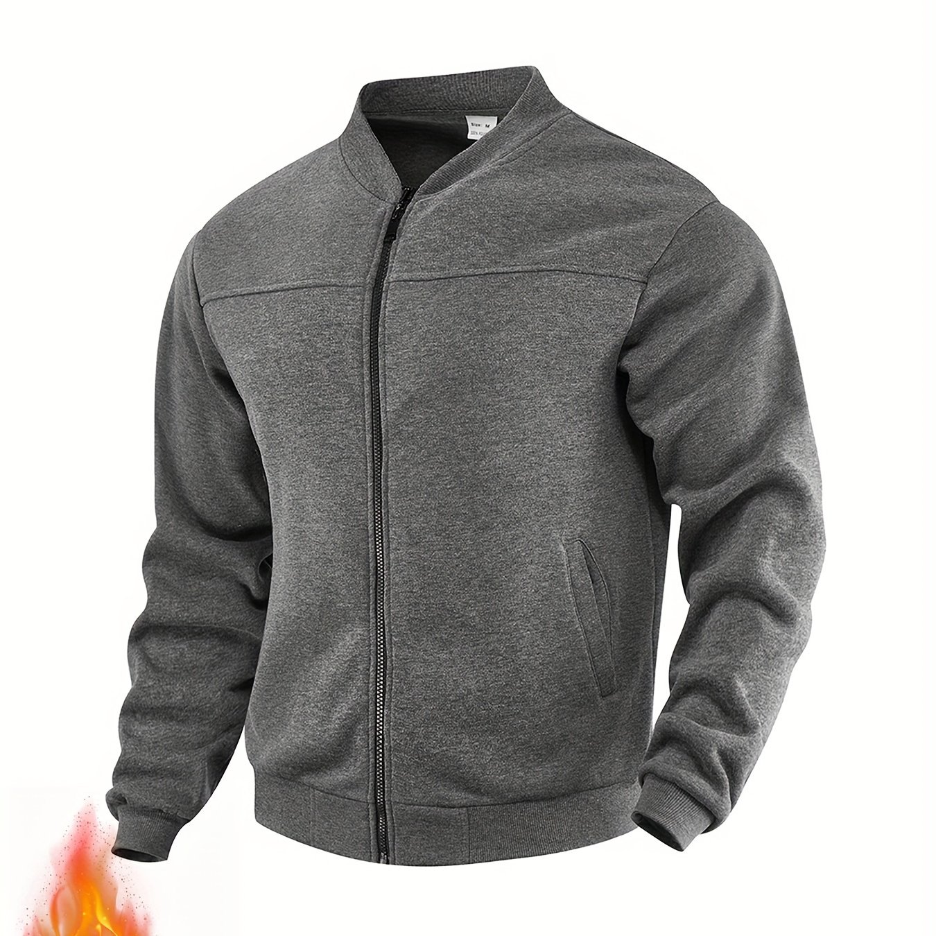 TEMU 남성용 플리스 안감 두꺼운 캐주얼 니트 스웨터 자켓, 플러스 사이즈 남성복, 폴리에스테르, 둥근 목, 스트레치 원단, 단색, 긴팔, 일반 핏, 니트 (후크 & 루프 원단), 가을/겨울, 스포츠 자켓