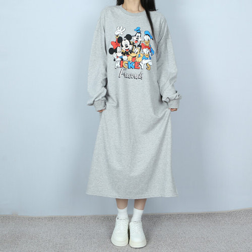 파라노말샵 / 프렌즈 라운드 맨투맨 오버핏 트임 롱 원피스 (파라노