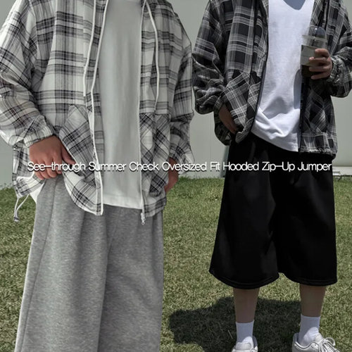 머시따 / 시스루 썸머 체크 오버핏 후드집업점퍼