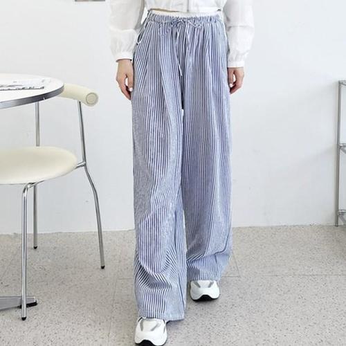 시어서커 줄지 여름 스트라이프 와이드 롱 밴딩 팬츠 2color 비치웨어