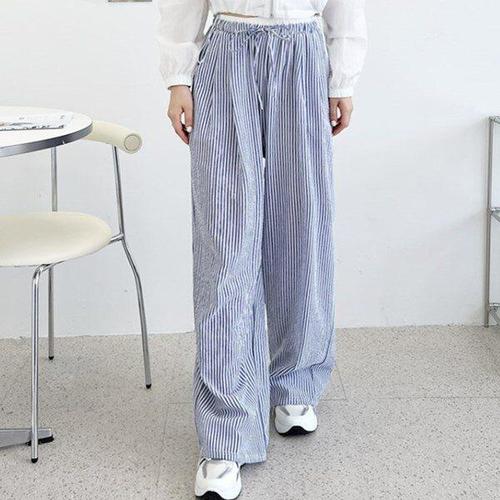 로아림 / 여성 여름 와이드팬츠 시어서커 바지 스트라이프 밴딩