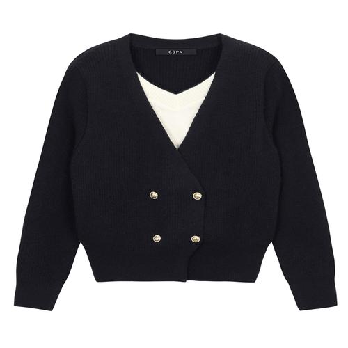 [GGPX][시즌오프] 레이어드 배색 골드 버튼 V넥 긴팔 니트 가디건 (GOCCK021D)