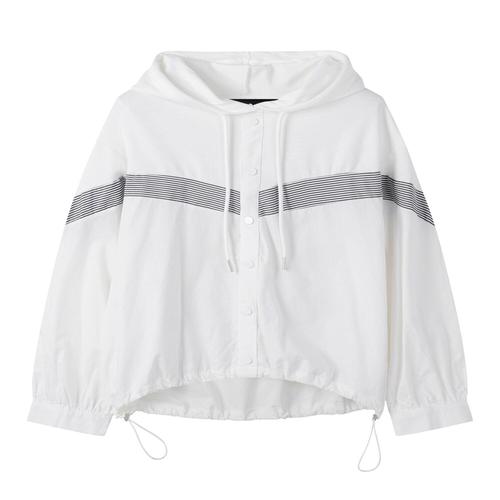 [보니스팍스][시즌오프] 스트라이프 후드 배색 페이크 버튼 긴팔 티셔츠 (XO3LW020L0)
