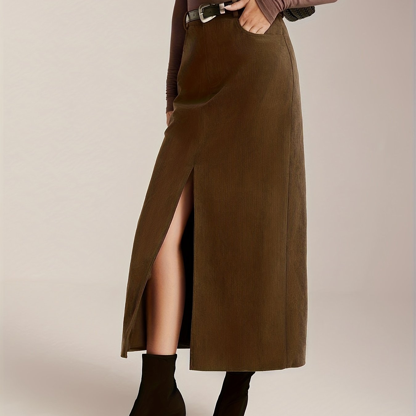 TEMU DIQIUVY 여성용 우아한 H-라인 하이웨이스트 겨울 맥시 코트 드레스 - 솔리드 브라운 플리스 텍스처 롱 포멀 & 데일리 팬츠수트, 슬릿 헴이 있는 구조적인 H-라인 실루엣, 가을/겨울용 세탁기 사용 가능 (벨트 불필요) - 캐주얼에서 프로페셔널까지 다양한 스타일링