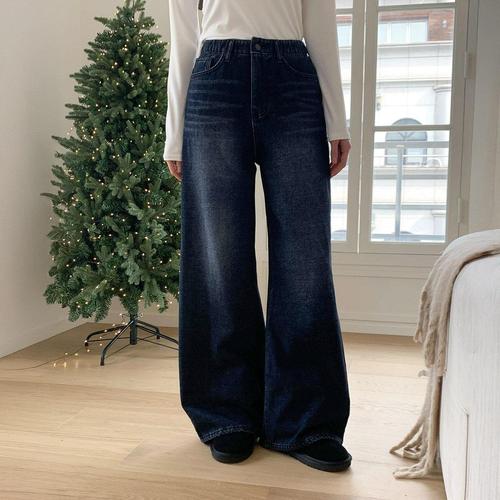 [시크블랙]티루리 와이드 워싱 기모 밴딩 데님 팬츠