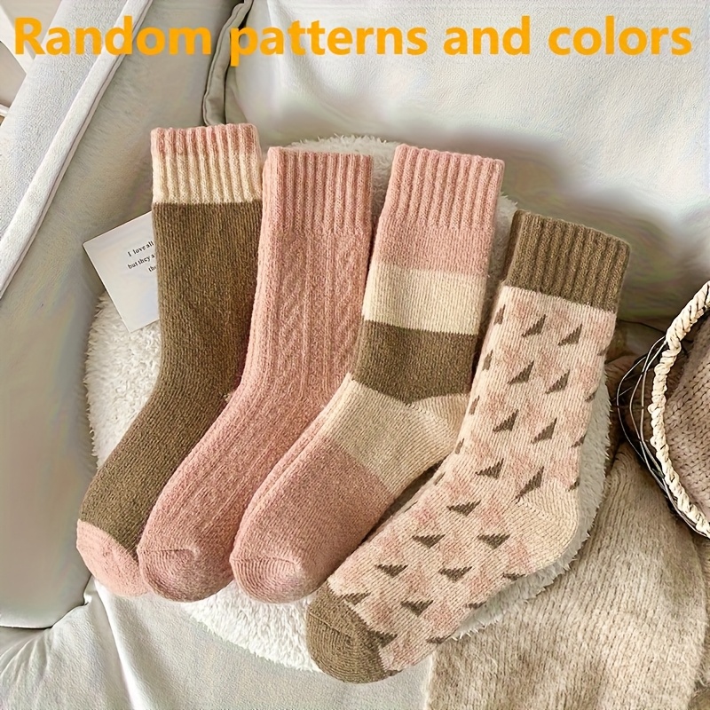 TEMU 4켤레/2켤레 여성용 두꺼운 미디엄 테리 양말 - 부드럽고 따뜻한 트윌 디자인, 라이트 커피, 브라운, 핑크 색상, 겨울, 가을 및 사계절 편안함. 손세탁만 가능. 겨울 양말 | 트윌 양말 디자인 | 질감