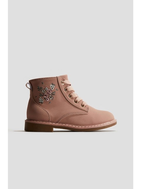 [에이치엔엠] 엠브로이더리 디테일 레이스업 부츠 더스티 핑크/플로럴 1295106001