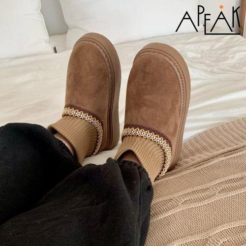2025년 가을 겨울 신상 플랫슈즈 여 기모 도톰클로즈업 스타일 스웨이드 퍼 슈즈녀