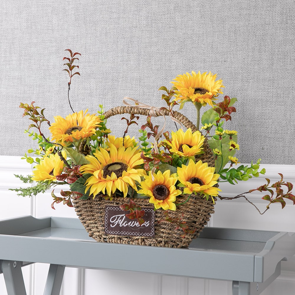 해바라기 조화 바구니 프레쉬 set 57cm 인테리어 꽃 테이블 장식