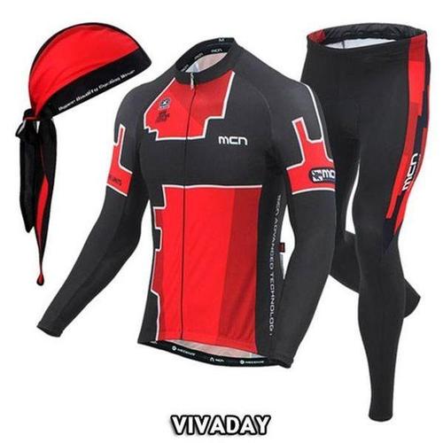 MCN 콘트래스트 자전거 사이클 라이딩 복장 긴팔 의류 상하의 세트 패드 포함 기능성 져지