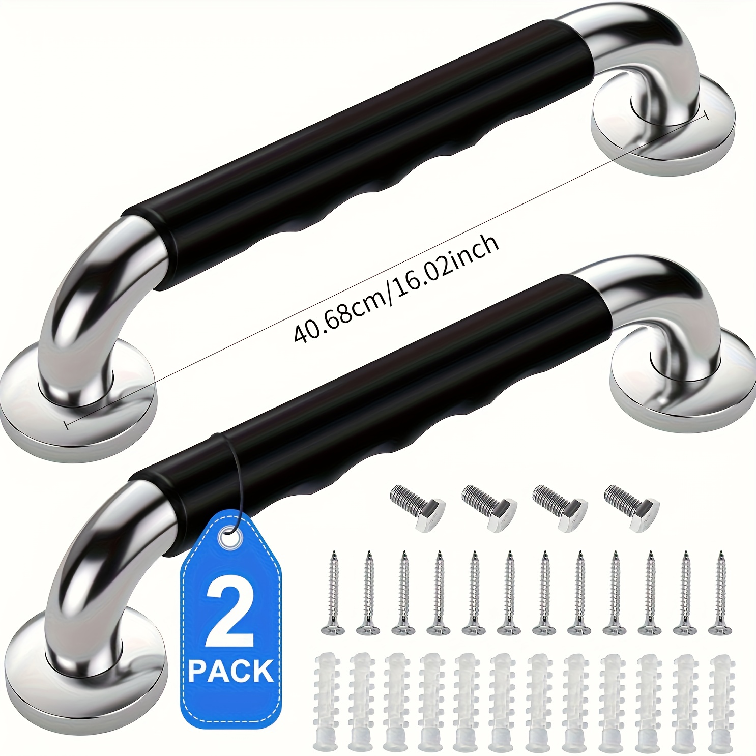 TEMU 2개 세트 스테인리스 스틸 욕조 및 샤워용 그랩 바 - 미끄럼 방지 안전 핸드레일, 인체공학적 디자인, 광택 마감, 장착 하드웨어 포함 - 노인 및 장애인용 욕실 안전 지원, 샤워 그랩 바, 욕조 안전 그랩 바, 매끄러운 메탈릭 마감, 내구성 있는 구조