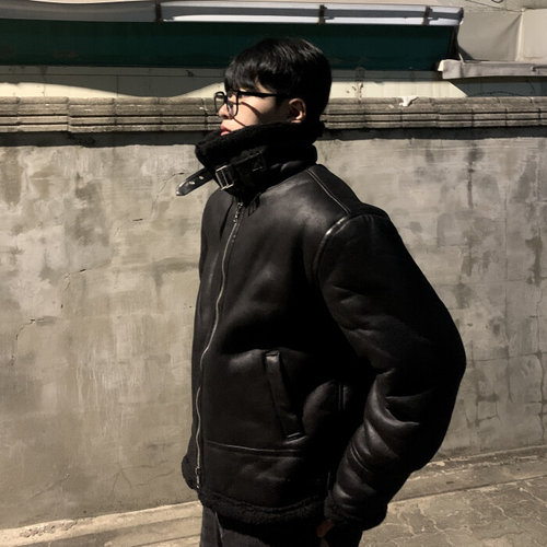 남자 겨울 천연 양가죽 무스탕 일체형 리얼 양털 두꺼운 점퍼