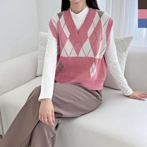 MA8028 아가일포인트 니트 여성상의 베스트 3컬러 여