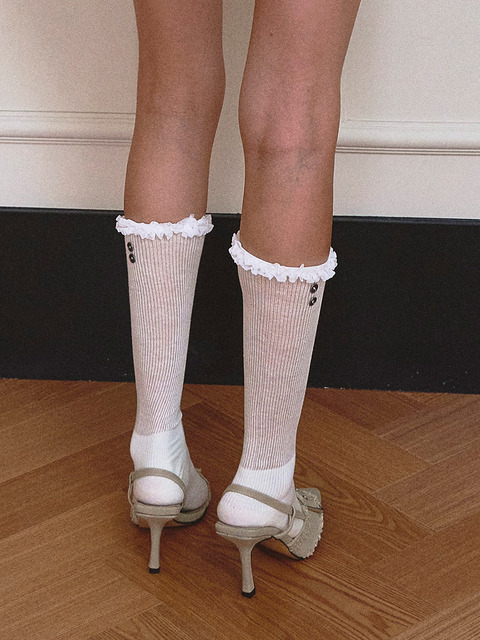 [비나제이] 더블 버튼 베이비레이스 골지 삭스 (White)