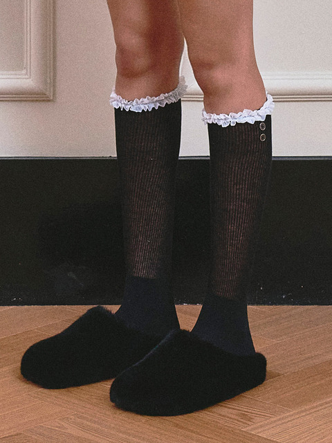 [비나제이] 더블 버튼 베이비레이스 골지 삭스 (Black)