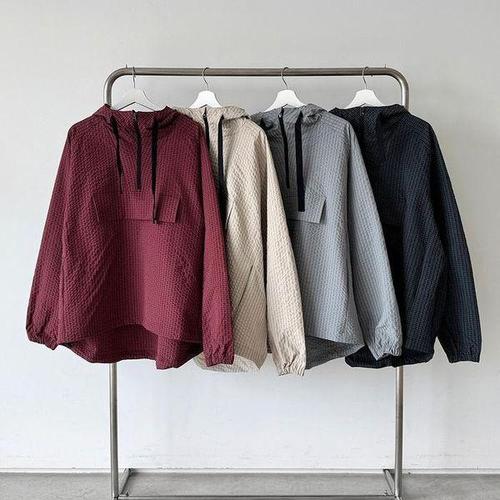 [빈트릴][빈트릴] 폴리써커 우븐 후드 시어써커 아노락 남녀공용 블랙 BA252WT003BK_IC
