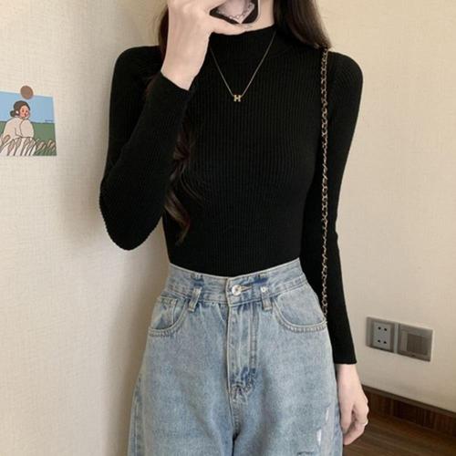 니트 겨울 반팔 목티 티셔츠 스판 면 긴팔티 티 반목 WFKY0WY