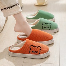 1+1 귀여운 곰곰이 슬리퍼 코튼 커플 실내화 곰돌이 따뜻한 양털 거실화