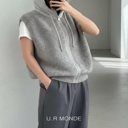 [유아몽드]유아몽드 여성 부클 후드 조끼 집업 뽀글이 니트 베스