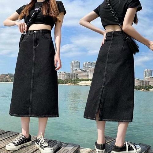 [엄지척]허리조절 뒷트임 A라인 블랙 데님 롱 긴 청치마_19956695_667501