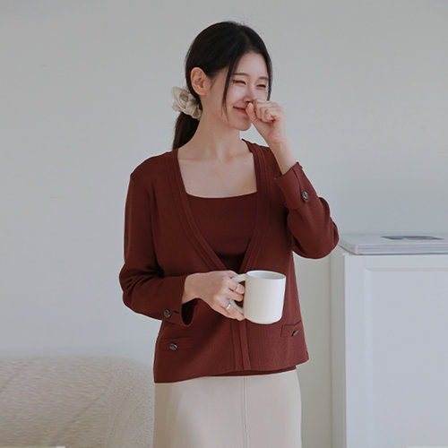 ★2종세트★[최초가 99,000원][르포엠]앙띠안 니트탑 가디건 앙상블 2종세트