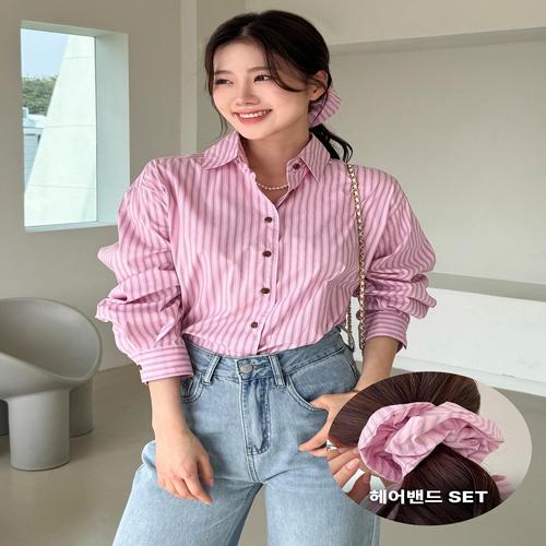 [모리스커밍홈][헤어밴드 증정]스트라이프 헤어밴드 셔츠 세트_M2504SE604B