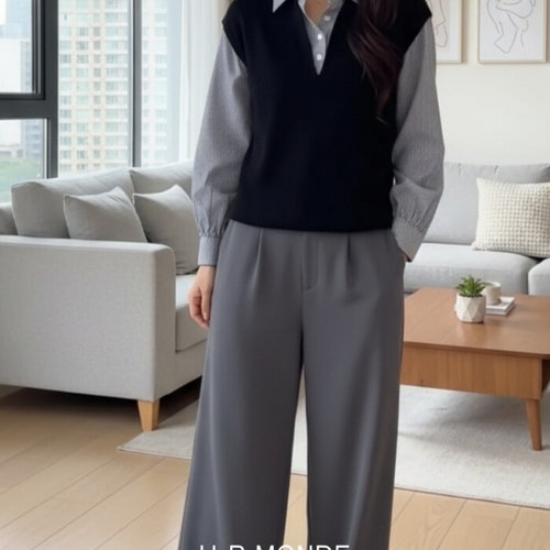 [유아몽드]카라넥 긴팔 스트라이프 셔츠+니트 베스트 레이어드