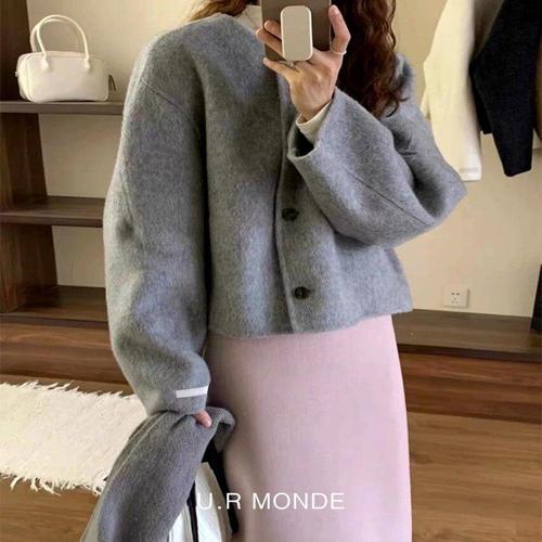[유아몽드]핸드메이드 숏 울 코트 아우터 여성 겨울 부드러운 코