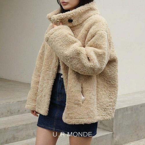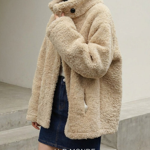 [유아몽드]몽글몽글 텍스처 하프 무스탕 겨울 아우터 하이넥 버