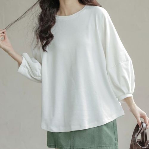허그허그 / 리즘 벌룬 소매 7부 화이트 라운드 티셔츠