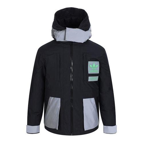 [아디다스]남성 블랙 후드디자인 배색다운점퍼